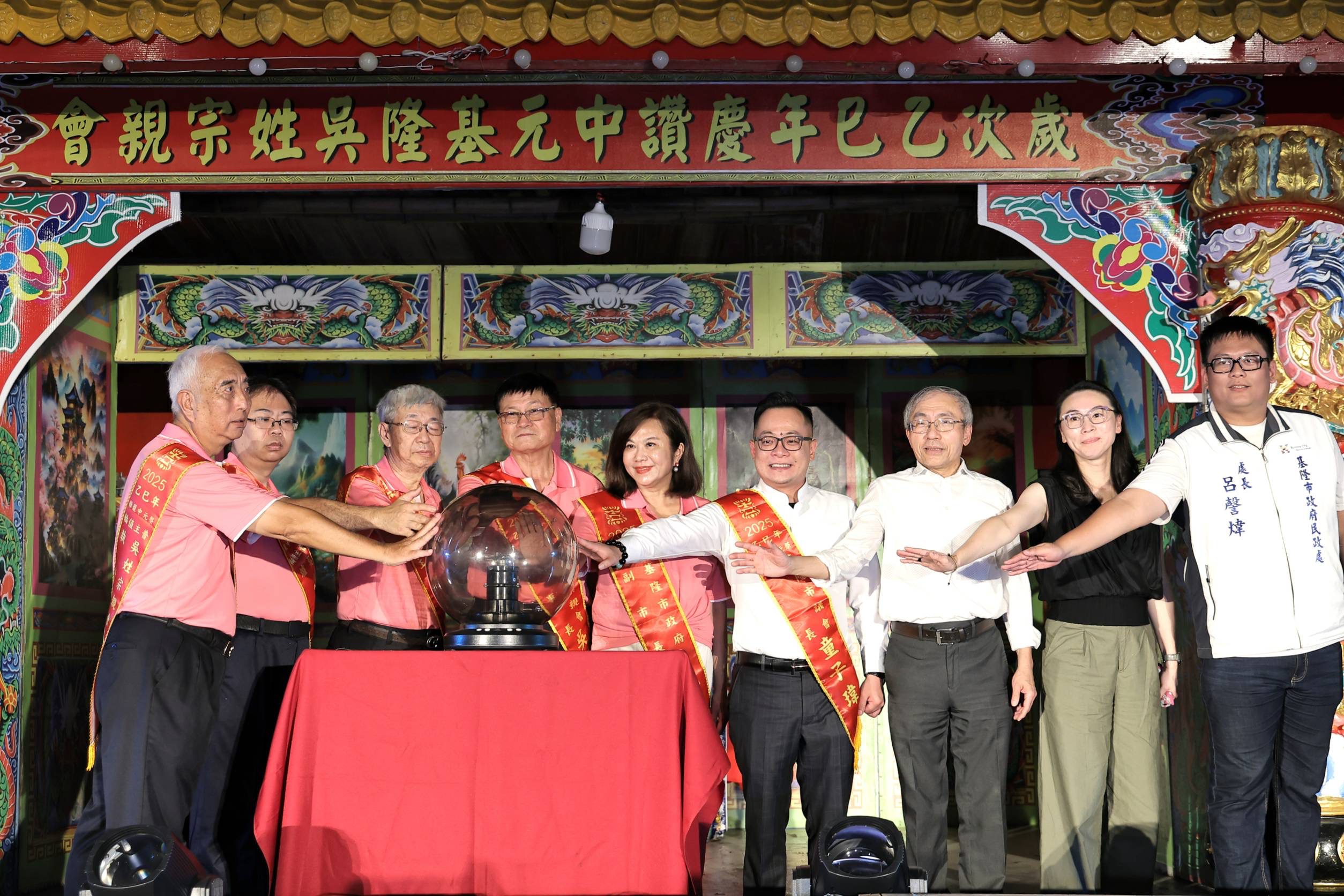 傳承171年的鷄籠中元祭今(3)日晚間於主普壇舉行「開燈放彩」儀式,基隆市副市長邱佩琳代表市長謝國樑出席,與今年輪值主普吳姓宗親會主委吳春成、理事長吳阿彬、執行長吳政材、各姓宗親會代表及多位市府首長齊聚,共同見證莊嚴科儀。文化部文化資產局局長陳濟民亦特別出席,彰顯對此項國家級文化資產的重視。