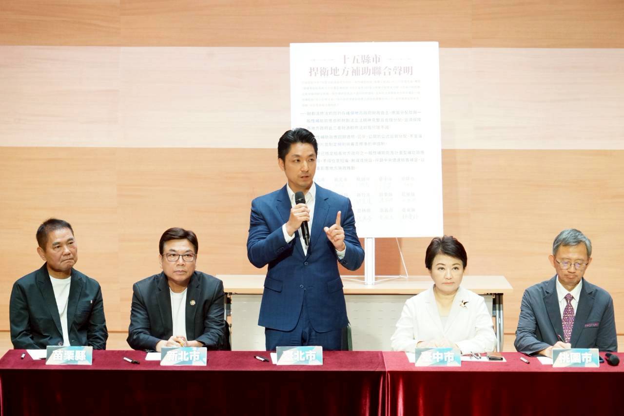 臺北市長蔣萬安今(10)日出席「十五縣市站出來!捍衛地方補助」記者會,他說,今天各縣市站出來,就是要地方包圍中央,就是要爭取地方自治的主體性,不要處處受制於中央、看中央的臉色,就是要為地方的弱勢、教育、攸關民生的軌道預算,來發聲!