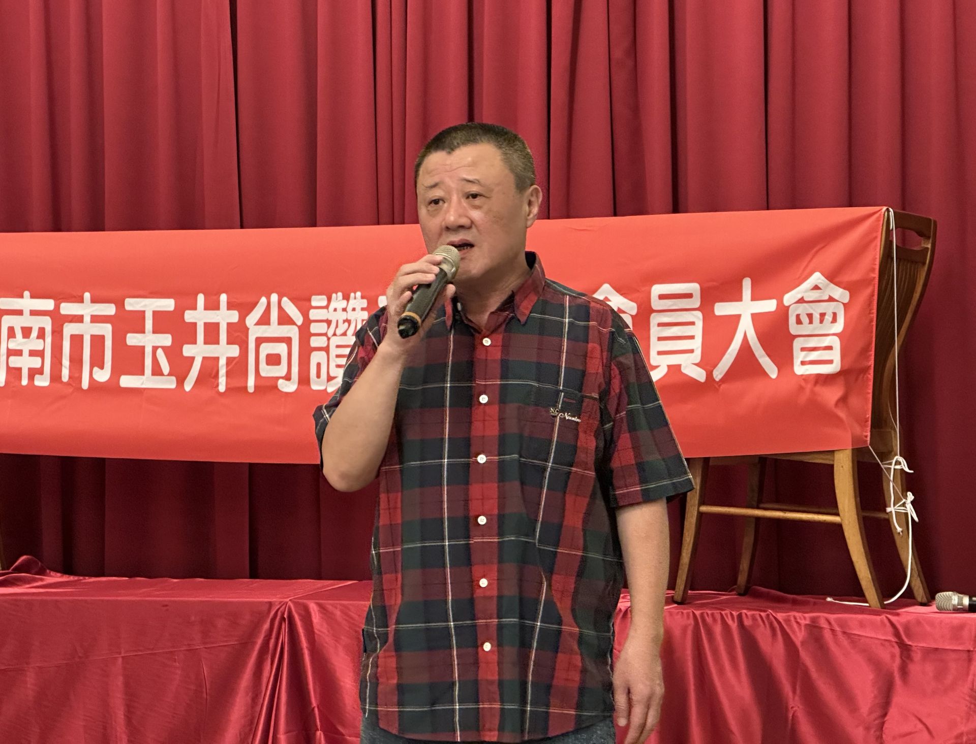 ▲「台南市玉井尚讚愛心會」創會理事長曾木泉致詞。(圖/尚讚愛心會提供)