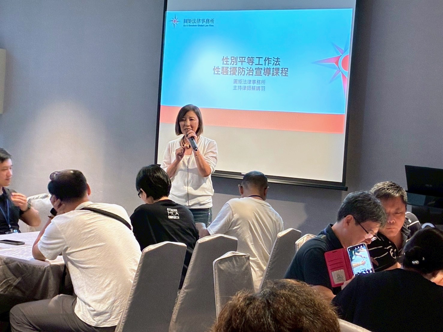 另於性別議題方面,課程特邀專業律師蔡晴羽講解性別平等工作法核心精神,並透過實際案例與教學影片,協助學員理解職場性別歧視與性騷擾的防制要點,提升管理人員敏感度與處置能力。