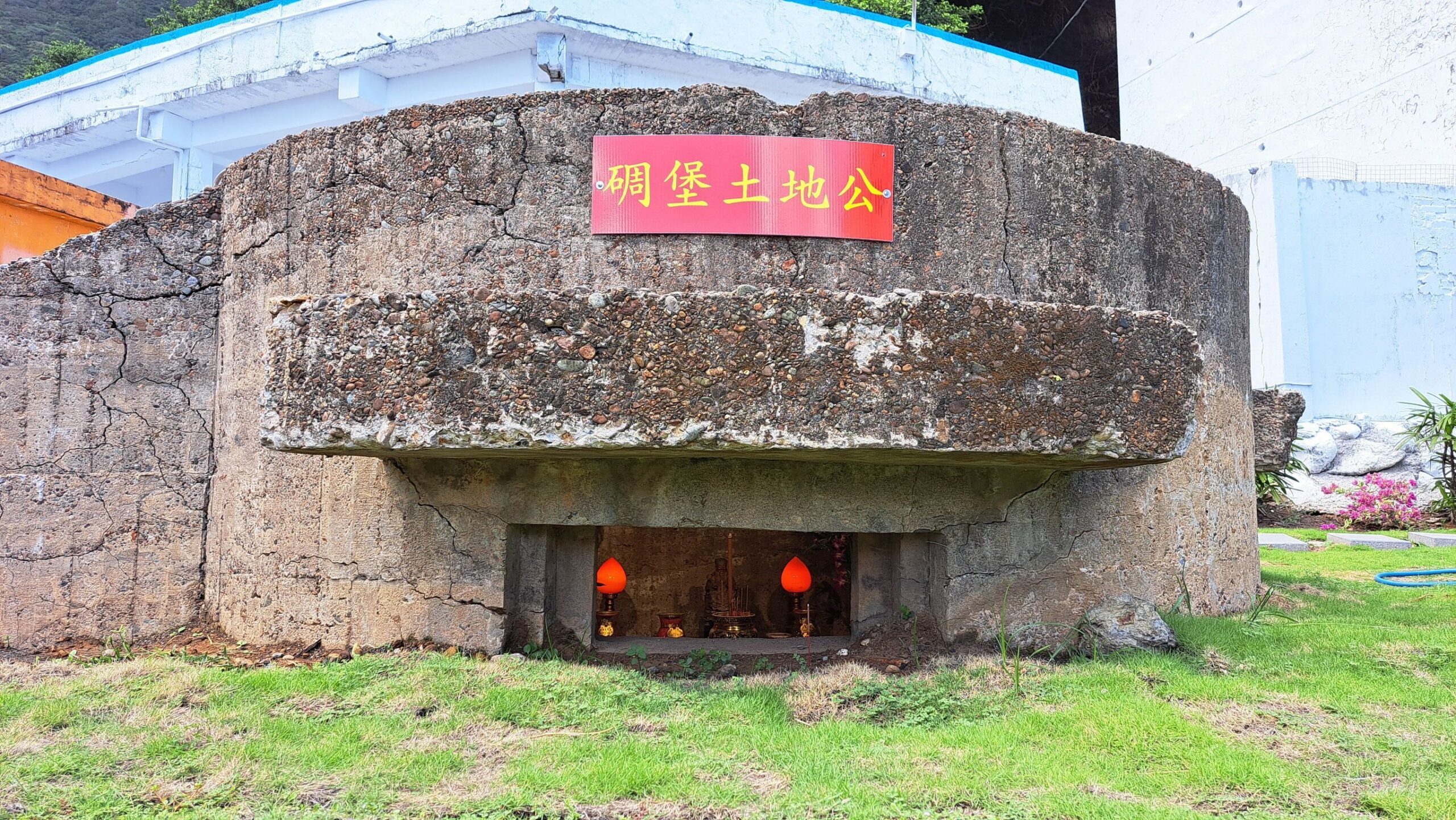 道場除主祀姜太公、北斗星君與地藏王菩薩外,亦供奉天上聖母、財神范蠡與其伴侶西施等神尊,象徵智慧、愛情與財富的圓滿。其中最具話題性的,是設於道場前方舊軍事碉堡內、全台唯一的「碉堡咖啡土地公」,羅世新說明,之所以如此命名,是得到土地公託夢指示祂愛喝咖啡,因此可見信眾常帶來各種咖啡與點心供俸土地公,信眾參拜後,可至觀景平台享用咖啡與點心,眺望壯闊海景,感受地中海風情與宗教氛圍交融的獨特體驗,是一座相當具特色,且極具親和力的土地公廟。