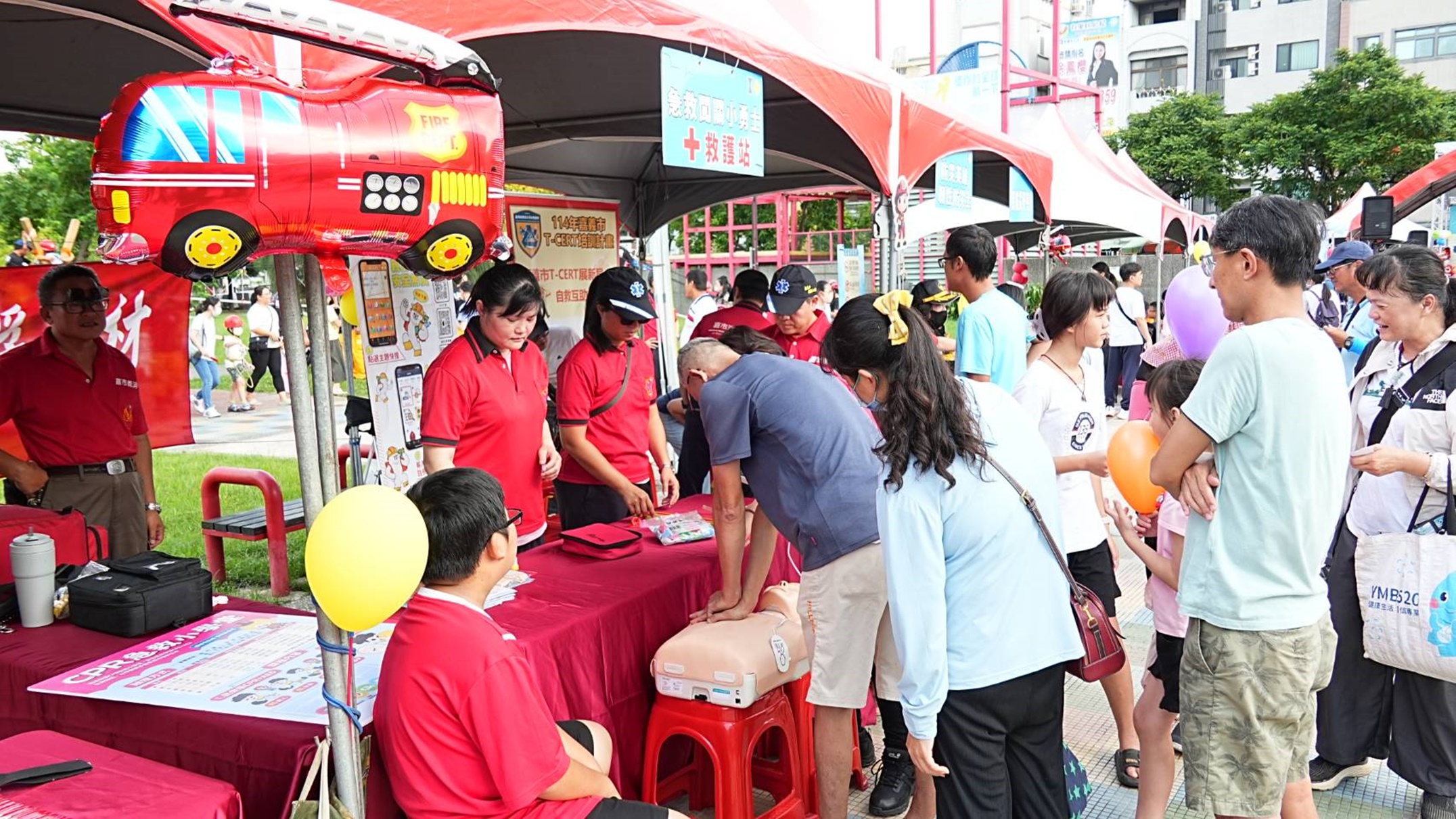 活動現場充滿了熱情與互動,各式防災宣導攤位吸引了眾多民眾參與,設計了闖關遊戲讓大小朋友能在輕鬆愉快的氛圍中學習正確的避難、逃生及防詐知識。寓教於樂的互動體驗攤位也讓現場氣氛更加活潑,參與者通過蓋章集點獲取精美禮品,大家不僅學到防災技能,還能夠享受樂趣,充滿笑聲與溫馨。