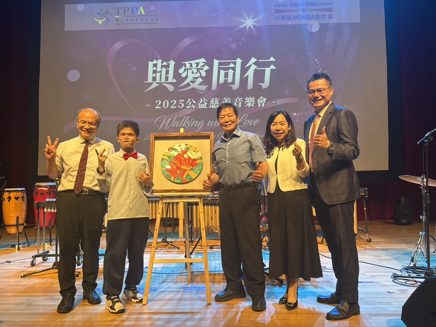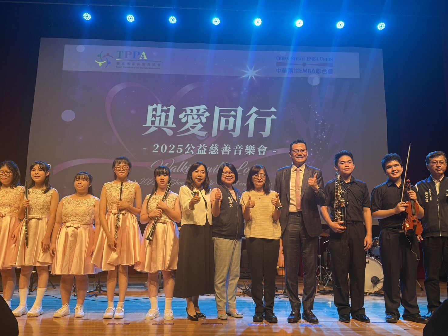 由台北市家長會長協會與中華兩岸EMBA聯合會共同主辦、臺北市教育局指導「與愛同行・2025公益慈善音樂會」,於20日晚間在中油大樓國光廳圓滿登場。會中並捐出一百萬元給台北市四所特教學校與愛基金會。
