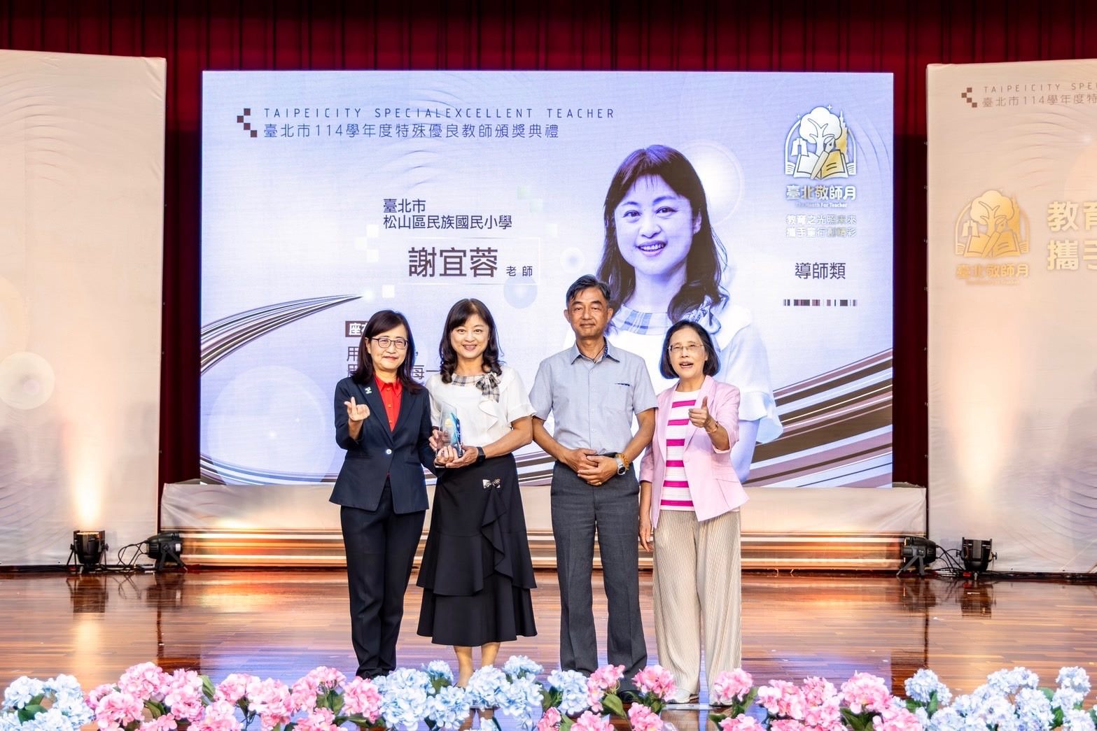 導師類的老師謝宜蓉老師,用行動展現「教育是點亮生命的光」。當轉學生小偉(化名)帶著自閉特質進入班級時,老師察覺他的特質,閱讀資料、主動與家長溝通,並協助申請特教資源,更在班上推動融合教育,透過繪本與同儕互動,培養孩子們的同理心,讓小偉逐漸融入班級,找回自信與笑容,甚至愛上了上學。畢業後,小偉在音樂專長上嶄露頭角,每次演出都能看見老師到場支持的身影。多年來的師生情誼,見證了她以愛與耐心守護孩子的成長,也展現「一日為師,終身為伴」的深刻實踐。