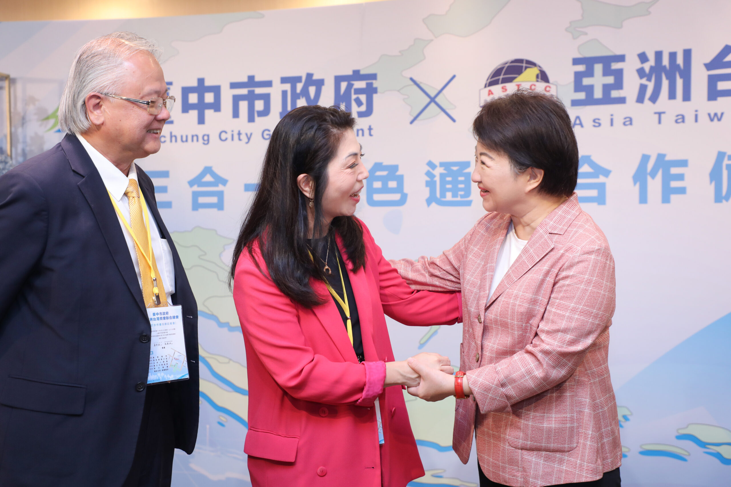 台中市長盧秀燕今(22)日與亞洲台灣商會聯合總會會長陳舒琴正式簽署「三合一綠色通道」合作備忘錄,市府未來將以單一諮詢窗口機制,服務海外台商投資、置產與定居台中需求,展現市府積極打造台商友善環境的決心。盧市長表示,台中被票選為全國最宜居的幸福城市,是台商落葉歸根、返台投資的首選城市,歡迎台商回來台灣,回來台中。