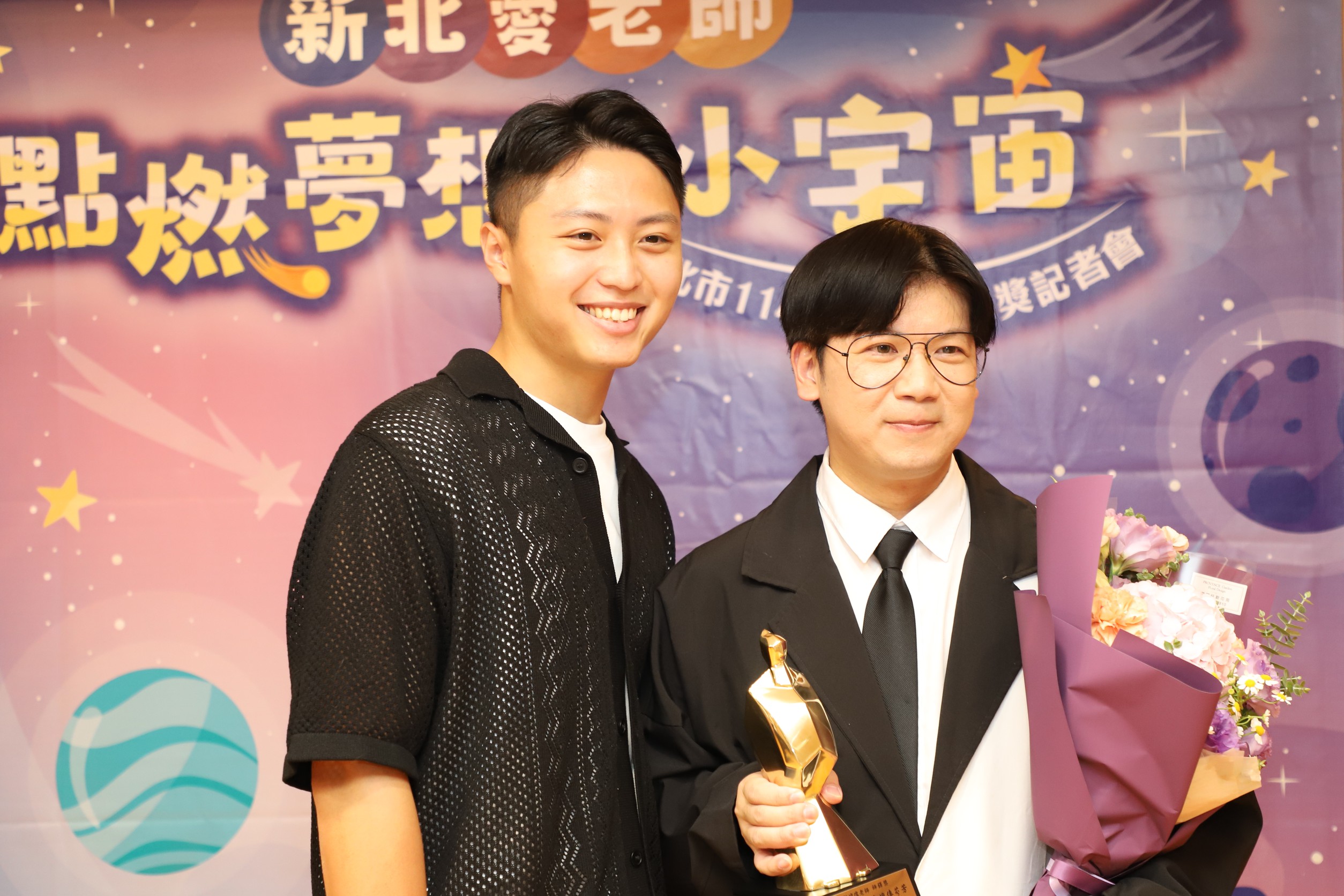 新北市今年共有6位教師榮獲114年度師鐸獎殊榮,教育局今(22)日舉辦「新北愛老師 點燃夢想小宇宙」表揚活動暨記者會,他們在教學現場用愛與專業,陪伴孩子跨越困境、勇敢追夢,翻轉無數人生故事, 學生們更以真摯回饋向老師致敬,傳遞教育最動人的力量。