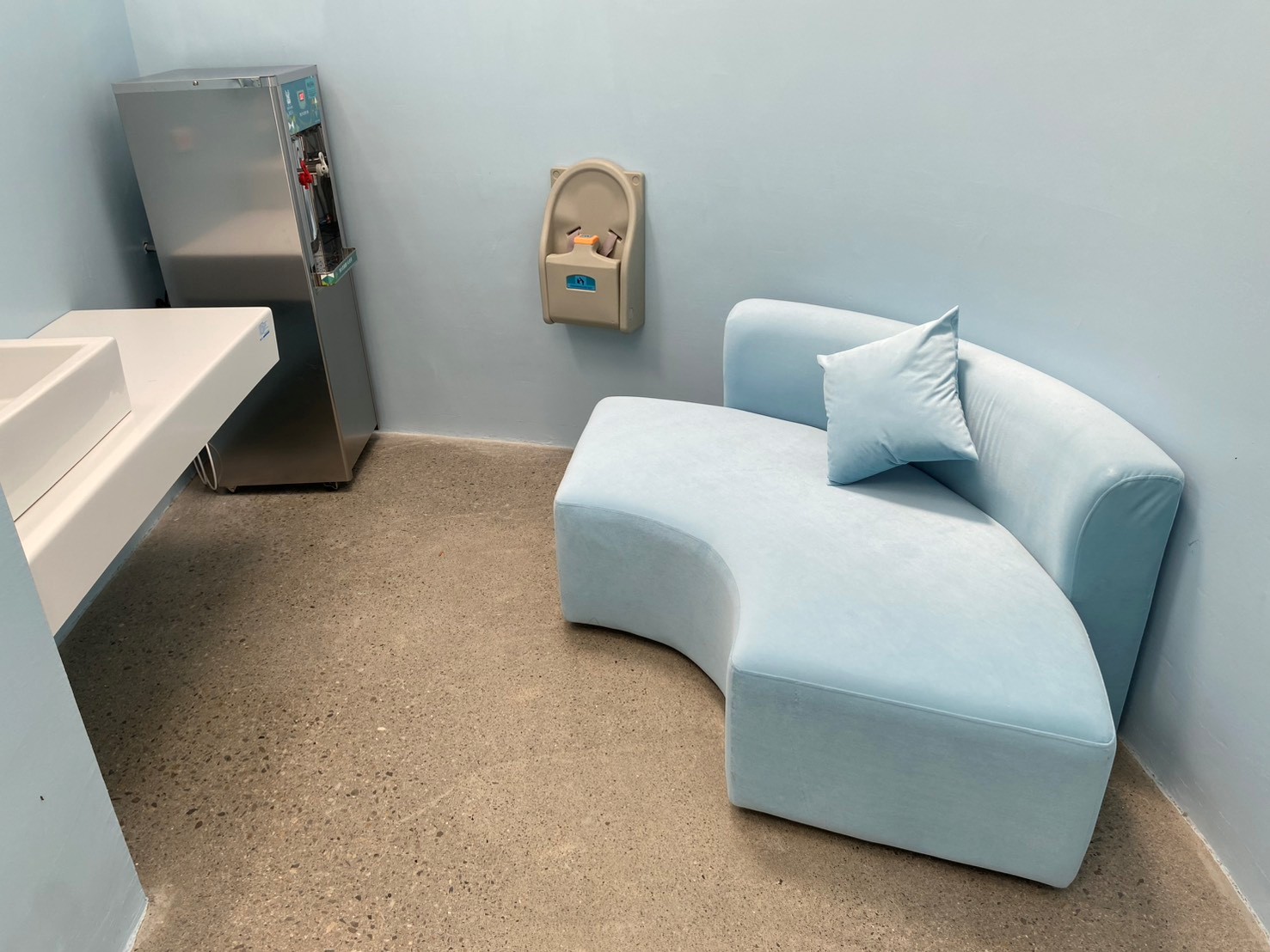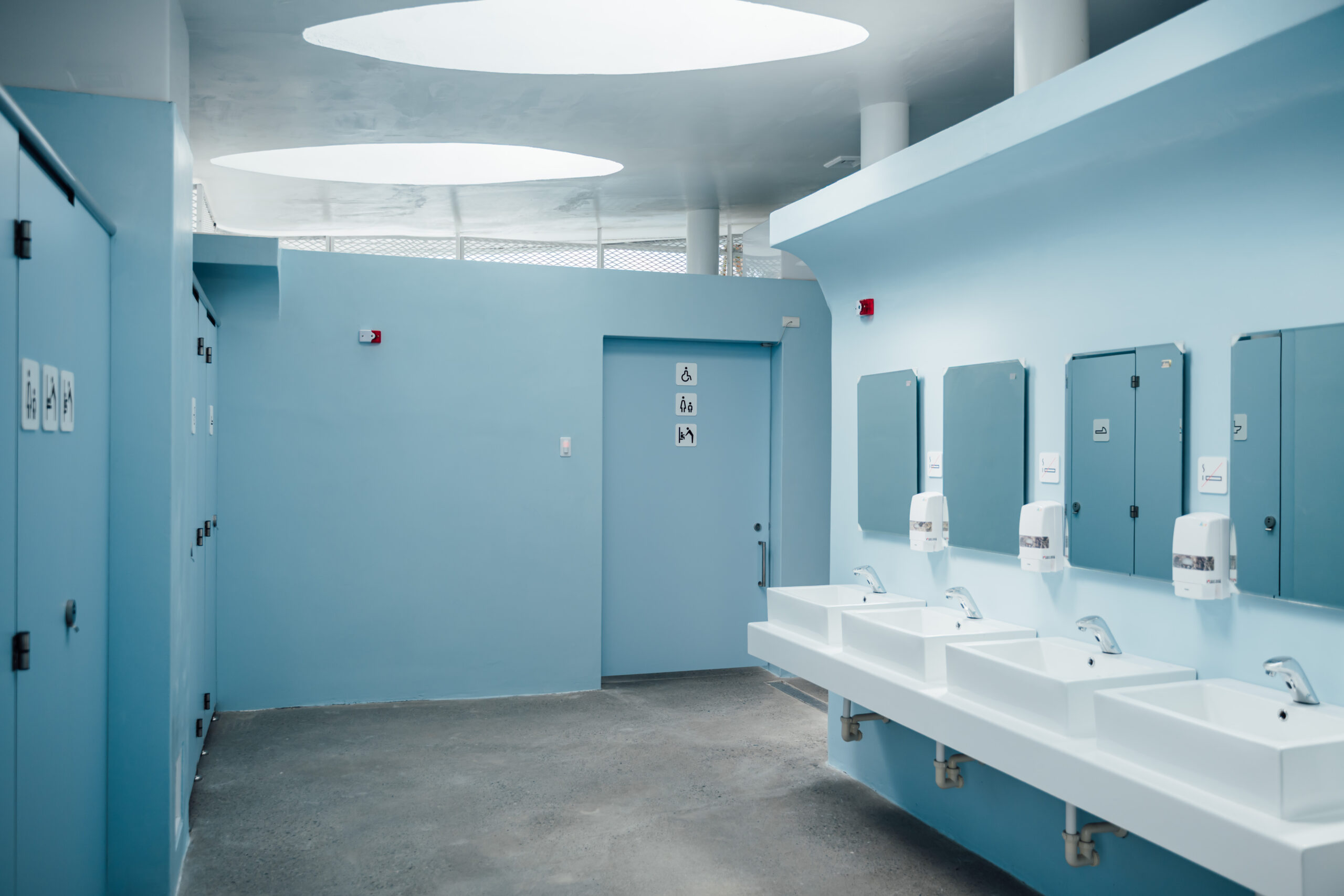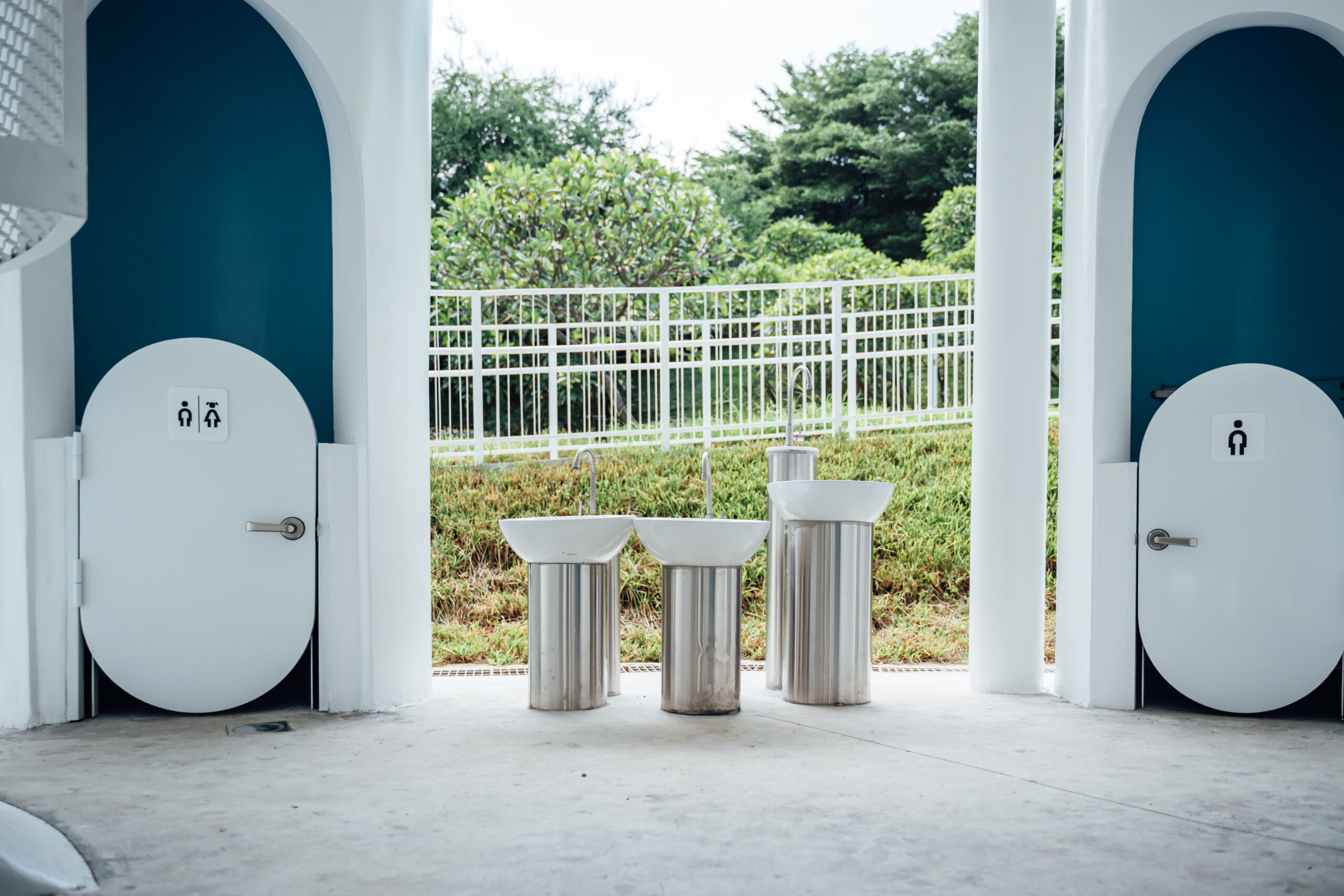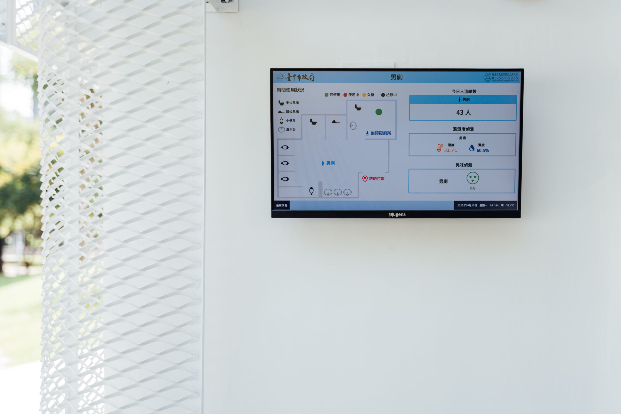 陳局長進一步指出,建築外牆採擴張網結構與自動監測排風系統,改善通風與採光;並導入智慧維管系統,包括QR Code即時通報、滿意度回饋與「久待示警功能」,以及物聯網(IoT)耗材監控,全面提升管理效率與安全性。平面設計融入風、光、水、景四大自然元素,室內以海水藍為主色,洗手區獨立設置保持乾淨乾燥;外部則拓寬步道、重整花圃,讓公廁兼具功能與美感。