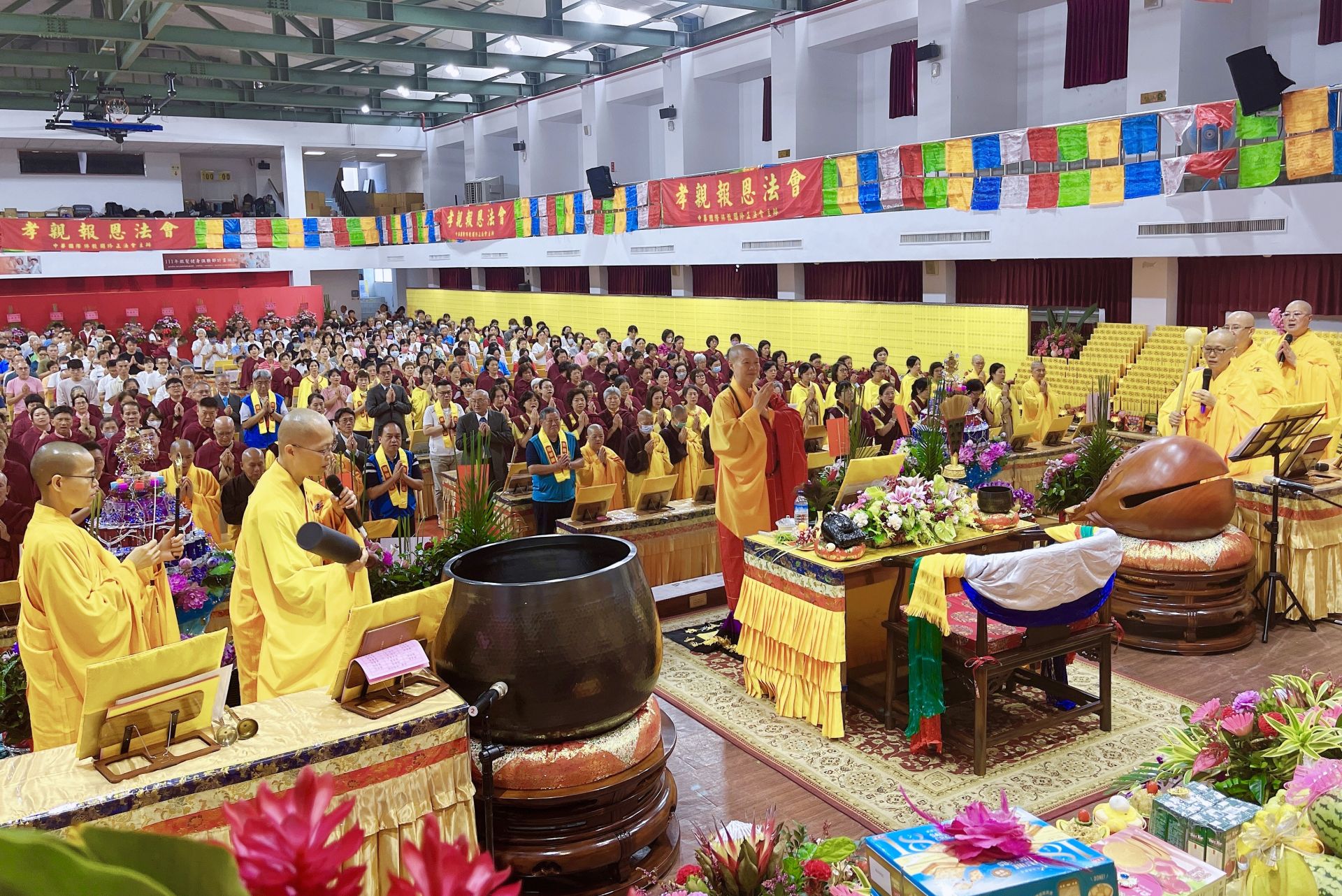 聖德釋證達教尊與僧團及來自台灣、日本、越南、美國、香港等地區的善信大眾法會圓滿後合影。(圖:中華國際佛教聞修正法會提供)