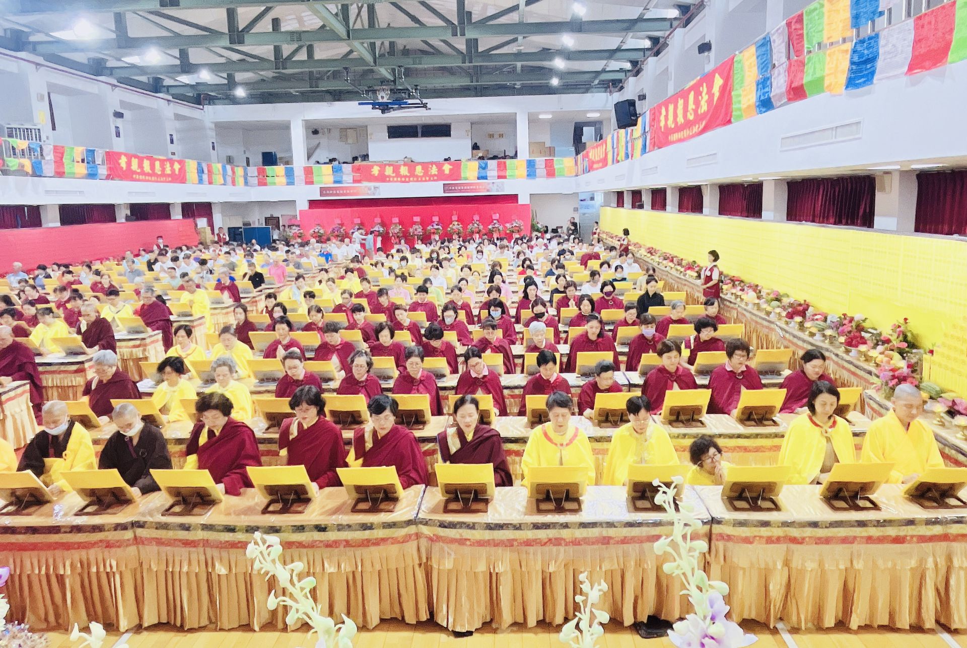 500多名善信恭誦《大乘金剛般若寶懺》、《地藏菩薩本願經》,場面莊嚴吉祥殊勝。(圖:中華國際佛教聞修正法會提供)
