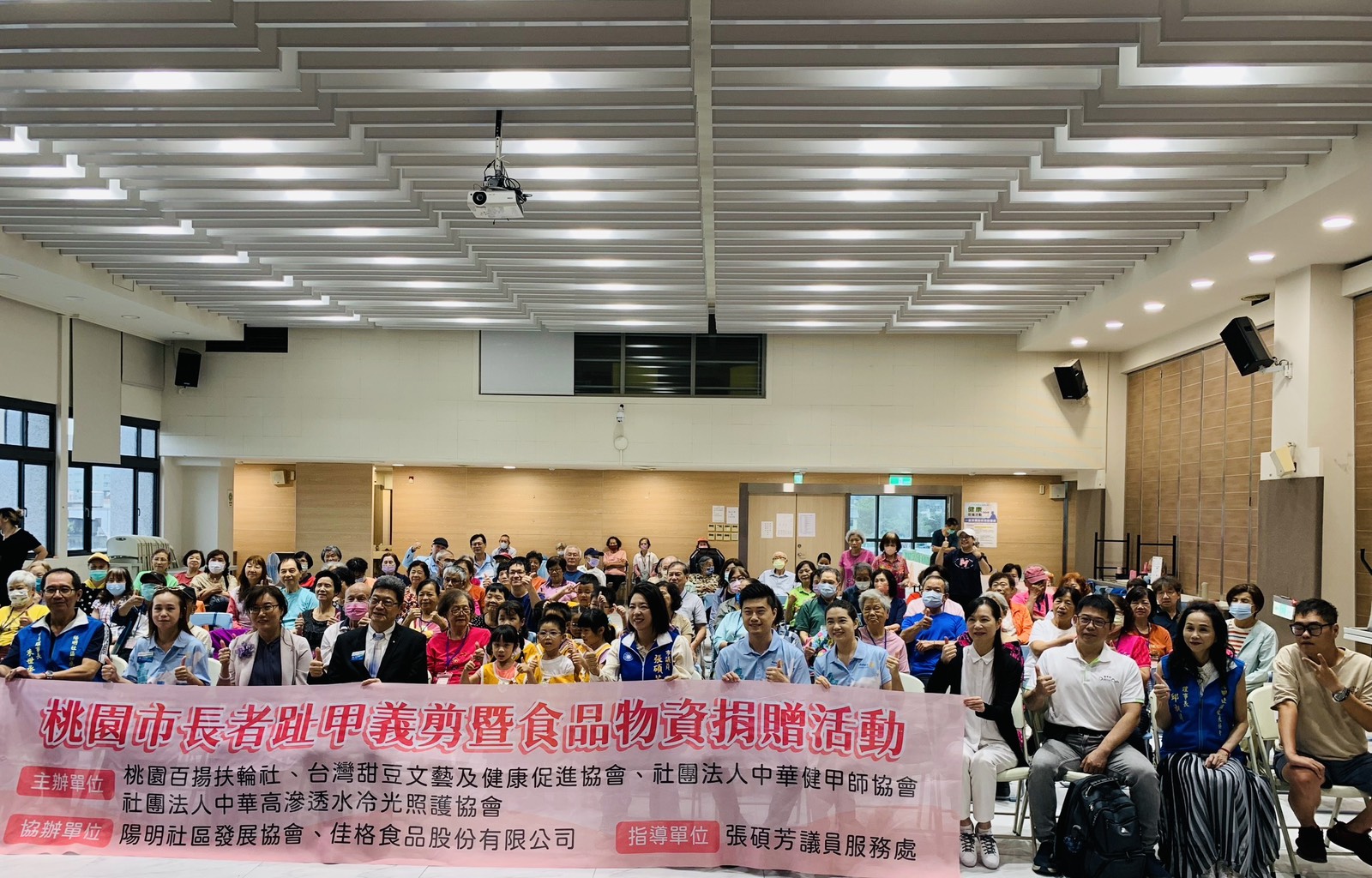 為關懷社區弱勢長者,解決其因身體不便而難以修剪趾甲的健康問題,桃園百揚扶輪社9月23日於桃園陽明社區發展協會舉辦「長者趾甲義剪活動」。本次活動特別邀請在嘉義地區成功服務超過一萬名長者的「台灣甜豆文藝及健康促進協會」、「社團法人中華健甲師協會」及「社團法人中華高滲透水冷光照護協會」三大專業團隊,將其成熟的醫療級培訓志工服務模式引入桃園,為長者提供專業、安全的足部護理,預防因趾甲問題引發的甲溝炎等病症。