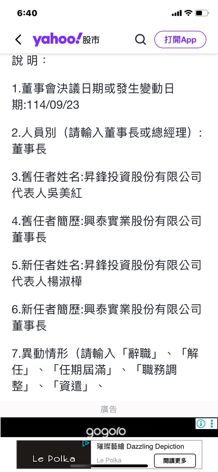 多位興泰股東透露,近期興泰旗下子公司昇鋒投資及興泰本體的負責人職務均出現突如其來的人事異動,過程未見充分說明,令市場感到困惑。部分股東質疑,相關變更程序是否完全符合法令,並呼籲主管機關介入調查,以確保小股東權益。