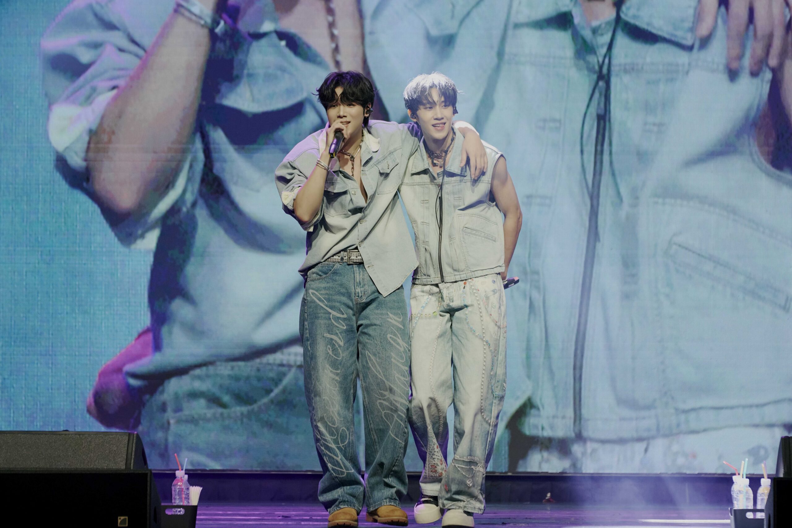 分別來自《原子少年2》兩顆不同行星的ARKis,見面會上特別選了KISS們敲碗已久的〈上癮〉和〈藍格子襯衫〉,負責〈上癮〉雕舞的東翰自爆練習時,常常和團員們說最後一次了,但卻不斷反覆多達10次之久,團員們都明白他求好心切,相當配合,但身為團內年紀最小的成員,還是不免對哥哥們不好意思,其他團員們聞言,立刻抗議:「東翰真的沒在怕,不要被他騙了。」主持人也問東翰老師今天誰的表現最滿意,東翰直呼是露出「冰塊腹肌」的雁凱,「跳舞有時候和演戲一樣需要一點意境,我覺得雁凱有抓到精髓。」雙帥分別秀腹肌,也讓KISS們眼睛福利滿滿。