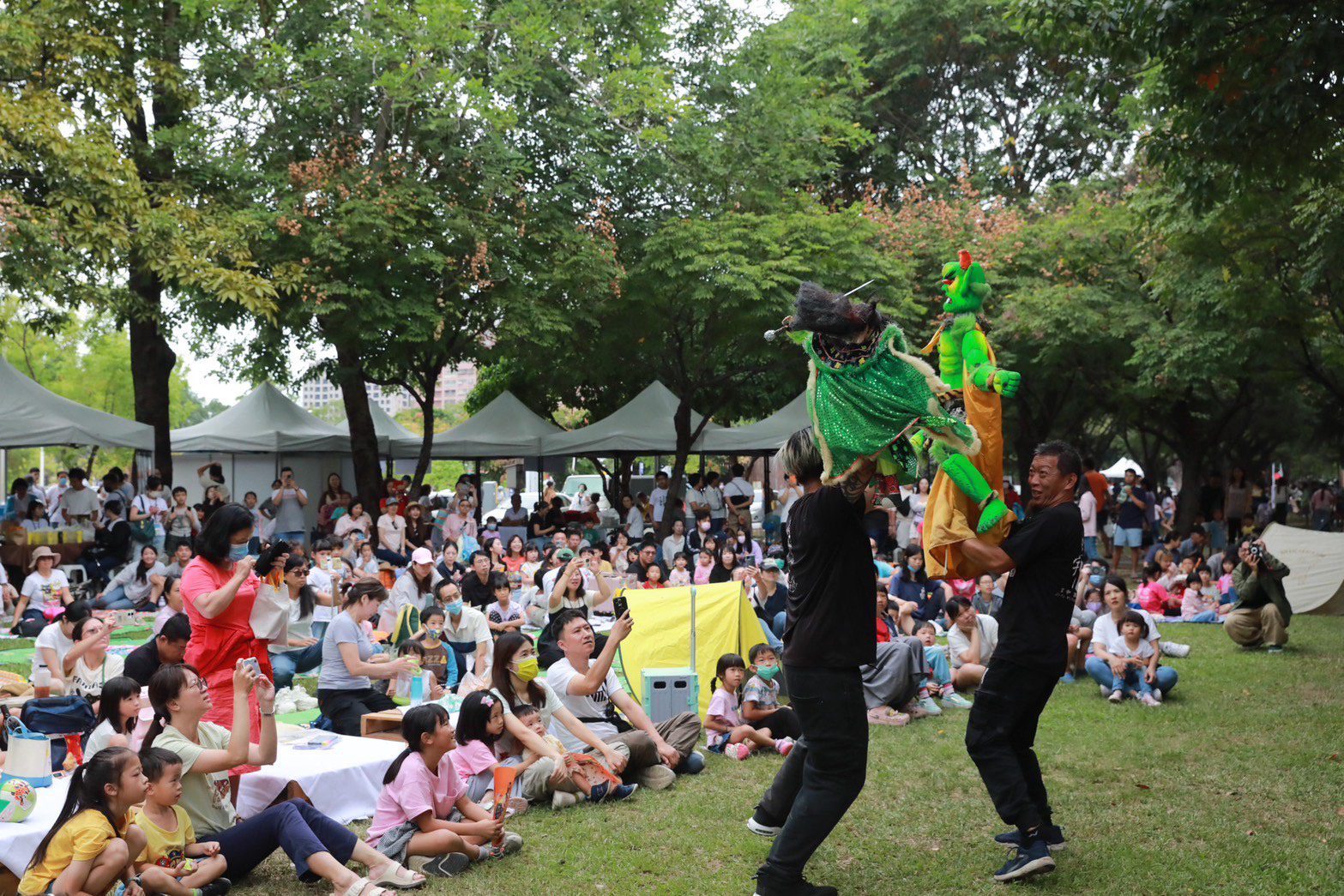 活動節目同樣豐富多元,盲人鋼琴家黃裕翔以溫暖琴聲感動人心,金宇園掌中劇團帶來精湛布袋戲演出,展現傳統藝術之美;吉他創作歌手楊順皓、樹德國小街舞隊、樹義國小國樂團及中興大學阿卡貝拉社輪番登台,現場掌聲不斷、氣氛熱烈。草地上同時推出泡泡奇蹟秀、南非黑人雜耍特技與趣味闖關遊戲等多項親子活動,大小朋友笑聲連連、歡樂滿滿。手作「帆布袋彩繪DIY」三場次名額全數額滿,參與民眾發揮創意、親手完成專屬作品;「多元文創市集」亦匯聚在地攤位,展現台中豐富多元的文創能量。