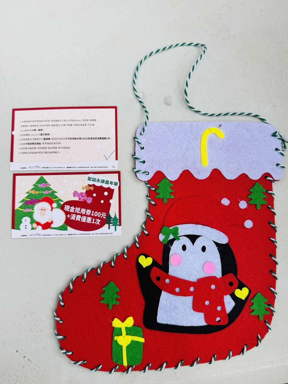 臺北市永康里李明螢里長表示,本次活動匯聚「親子體驗手作、舞台特色表演、耶誕氛圍市集」三大亮點,有效帶動現場人氣。其中「限量300份DIY聖誕襪體驗」為最具話題性的熱門項目!民眾不僅能親手製作極具收藏性的耶誕襪,完成後還可立即獲得新臺幣100元特約店家現金抵用券。憑親手製作的聖誕襪及此券,可於活動當日由12家特約店家(包括可夫萊、維格餅家、草原風蒙古火鍋等)擇一折抵,並加碼享受該店專屬消費優惠,機會稍縱即逝,搶完為止!此外,全時段也安排小朋友最愛的「DIY棉花糖」體驗攤位,用甜蜜滋味為親子時光加分,留下美好的耶誕回憶!