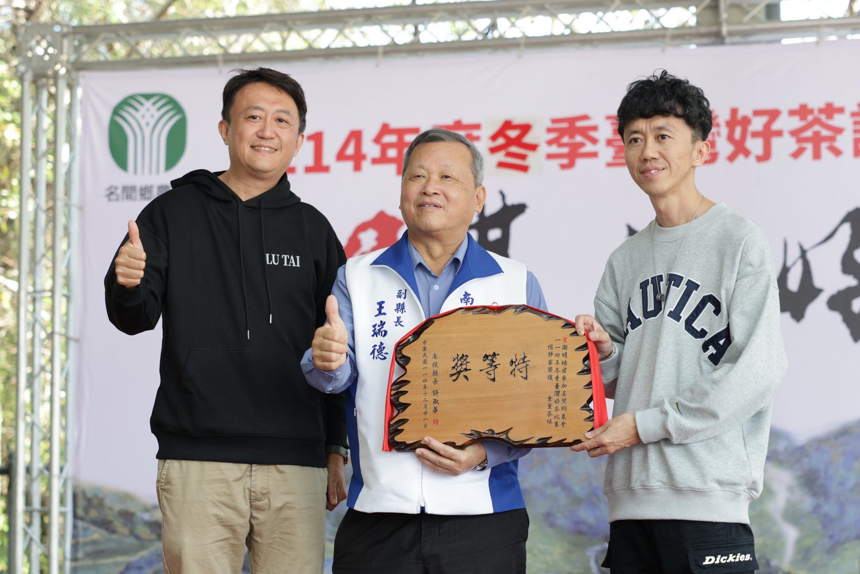 名間鄉農會辦理「114年冬季臺灣好茶比賽」,共計320件報名參賽,經過初評及複評,成績於5日公布,並於今(21)日在農會廣場舉辦頒獎典禮。烏龍組特等獎及金萱組特等獎分別由李志展及謝明皓獲得,副縣長王瑞德到場,代表縣長許淑華頒發特等獎匾額,肯定得獎者在茶葉種植上的用心。