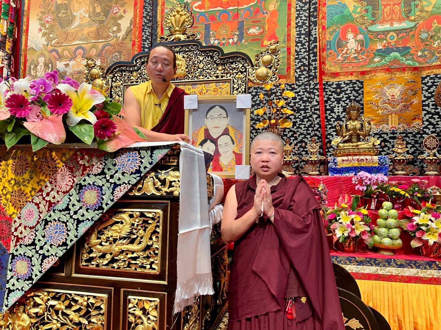 這樣的理念,也在她今年的重要時刻得到印證——於 第41、42、43任薩迦法王同框蒞臨台灣傳法 之際,持明法解親自呈獻其代表作〈千年傳承,智慧怙主〉,向 第43任薩迦法王 致敬,成為其藝術生命中極具象徵意義的一幕。