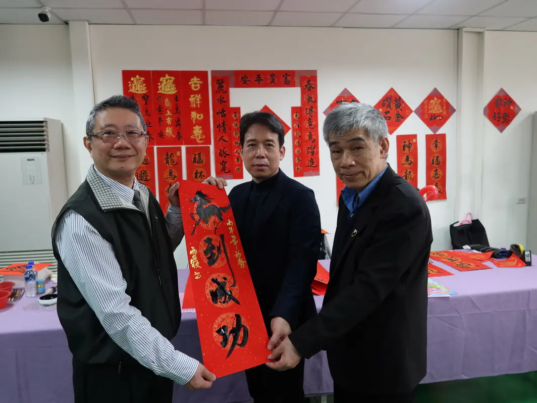▲書法家馬水城老師致贈春聯予典獄長黃正勇與秘書朱志誠。