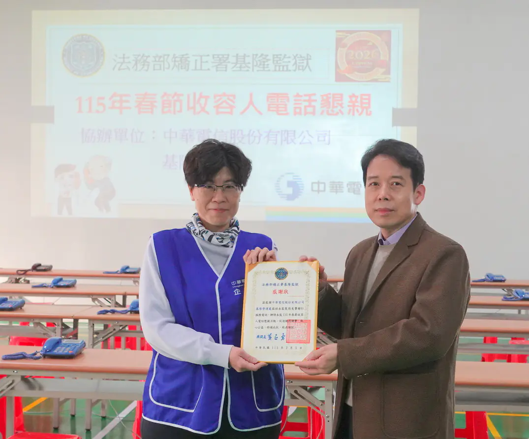 秘書朱志誠在活動中特別強調,家庭連結是收容人教化成效中最重要的基石。此次更邀請中華電信基隆營運處林佳儒副總經理到場共襄盛舉。透過電話線的傳遞,收容人得以向遠方的親人拜早年,將那份無法親自訴說的虧欠與愛意,化作一聲聲真摯的問候,進一步凝聚家庭情感,激發出未來重新回歸社會的正向動力。