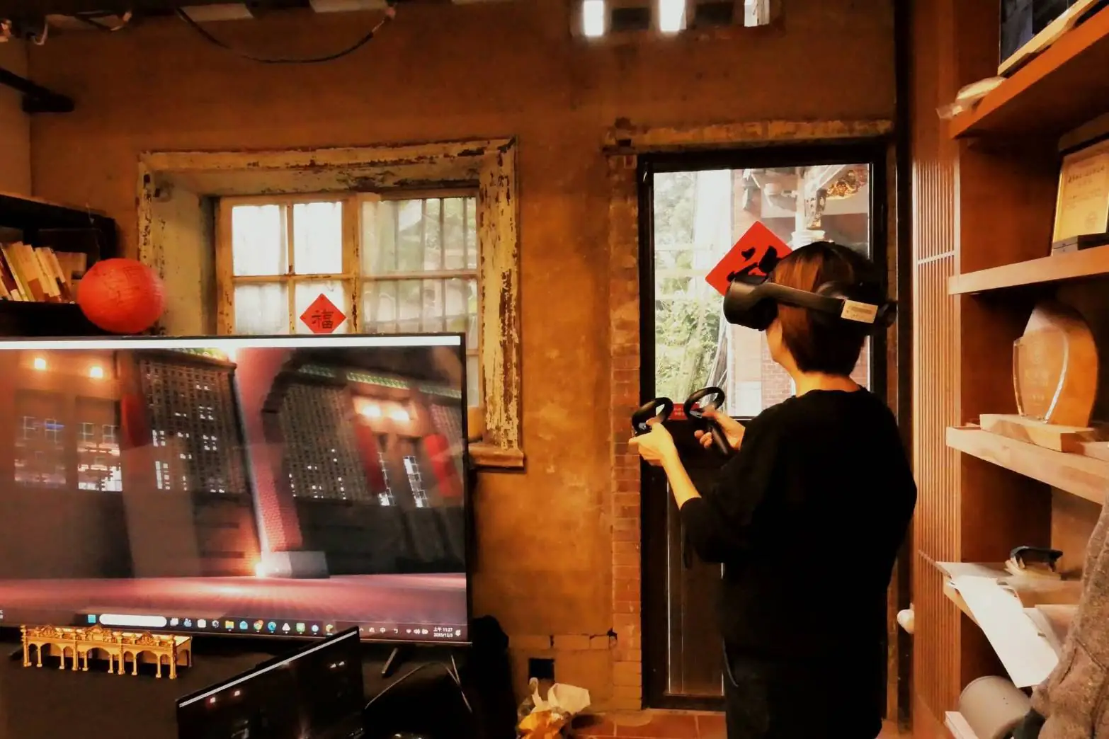 除實境遊戲外,也以市定歷史建築蘭室為藍本建置VR內容。團隊運用Minecraft遊戲建模重建空間,再現院落格局與生活氛圍,體驗者戴上頭戴裝置後,走入老屋的虛擬場景,以遊戲解謎方式認識傳統建築之美。